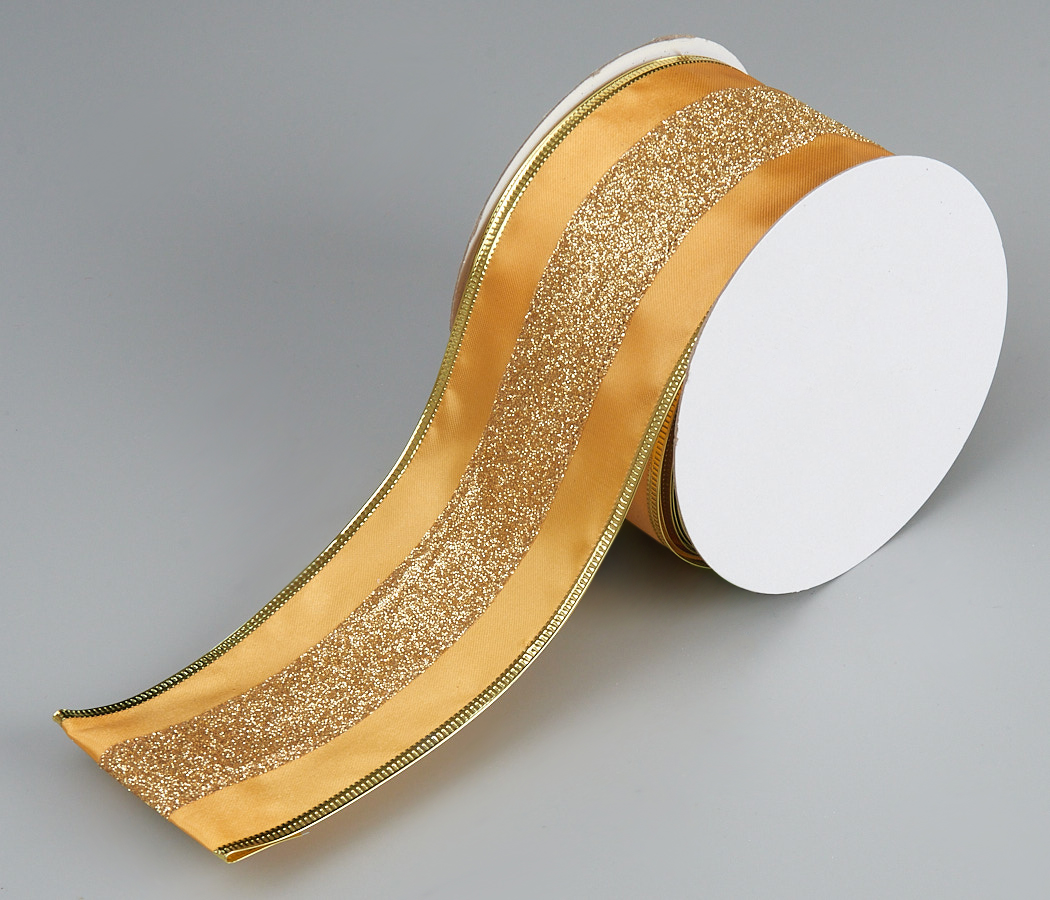Лента новогодняя декоративная 6,3*10 ярд, 1 шт. шампань/золото