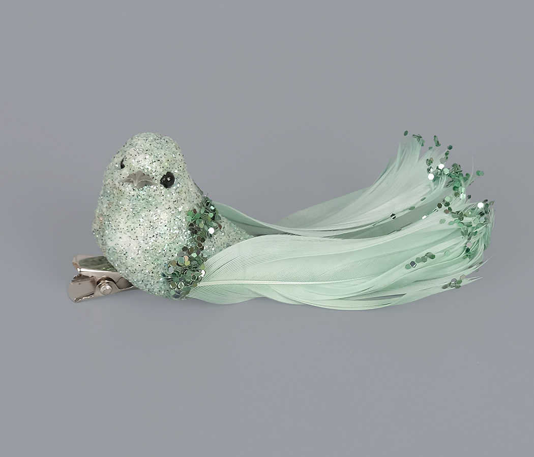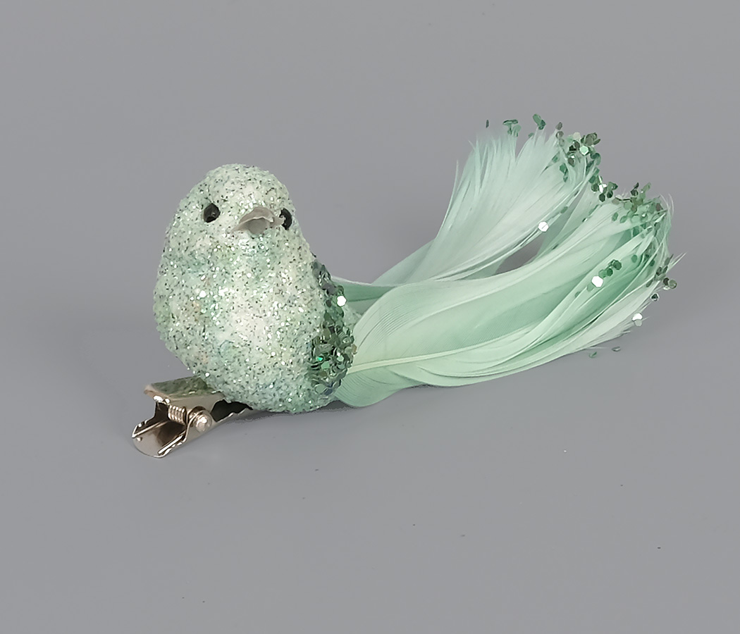 Набор фигурок декорат. 12 шт "Птичка с глиттер. на палочке" (из натур. перьев) 9x4,5x3 см фисташков