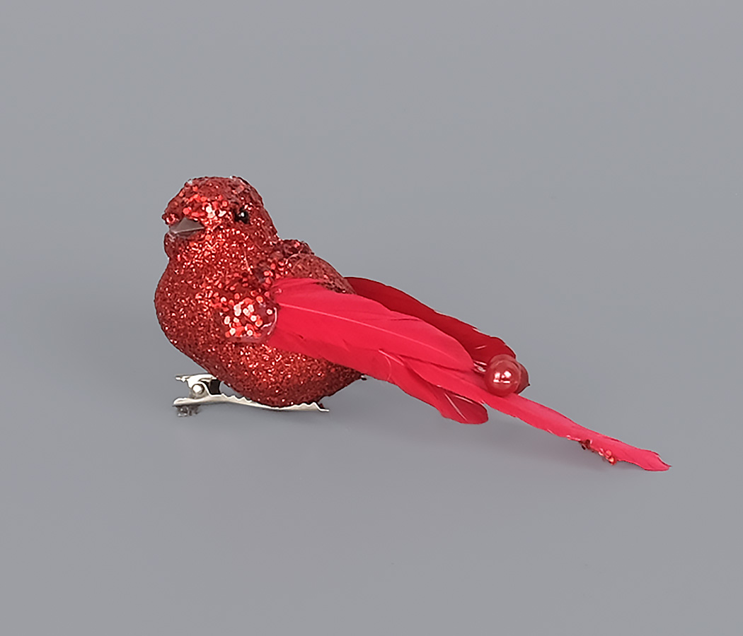 Набор фигурок декорат. 12 шт. "Птичка на клипсе" (из натур. перьев) 10x3,5x4,5 см, красный