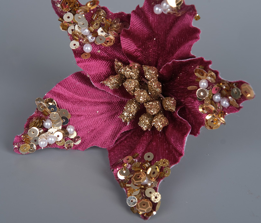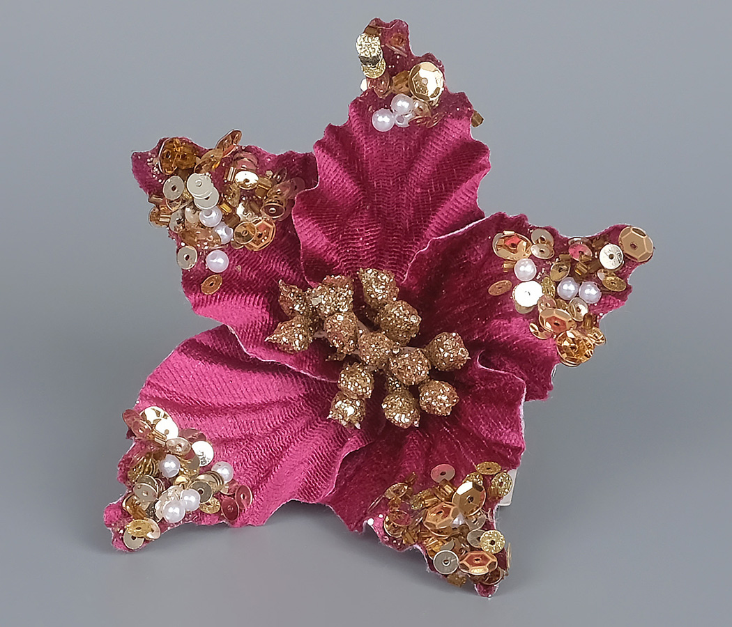 Декоративный новогодний цветок Пуансетия D15 см, 1 шт., малиновый