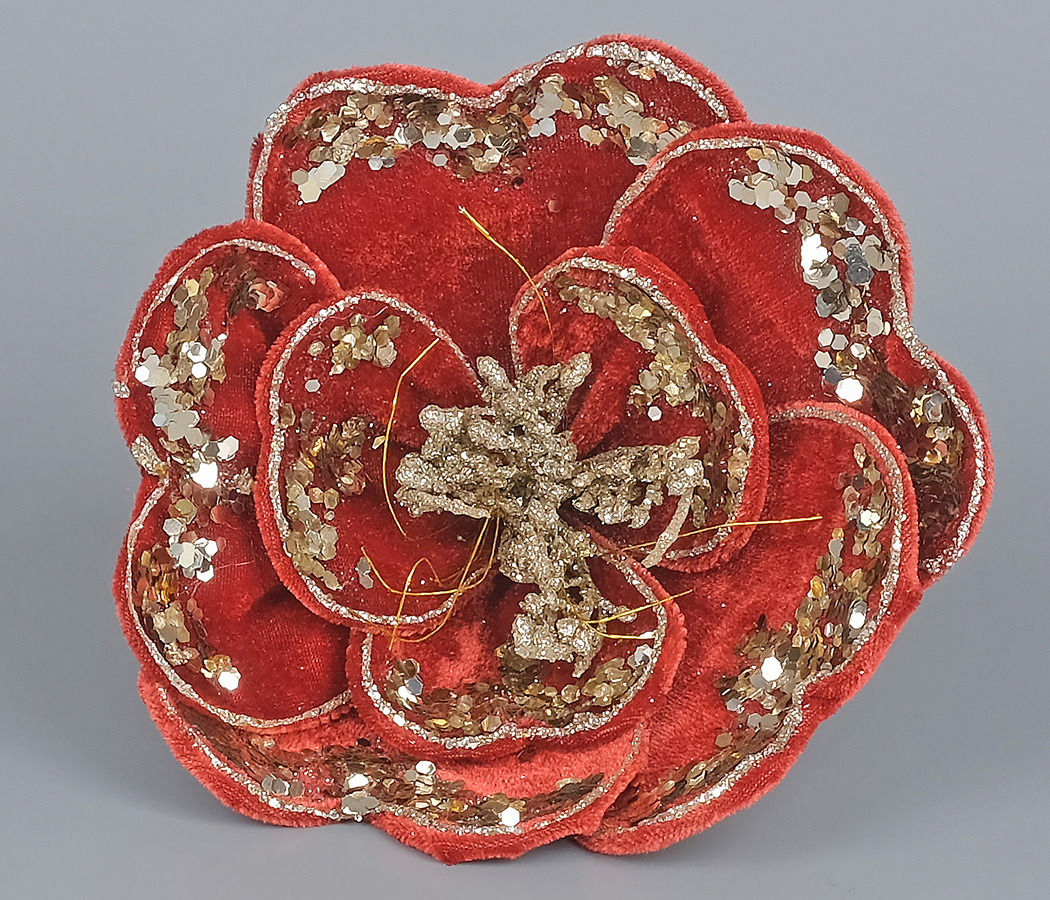 Декоративный новогодний цветок Магнолия D18 см, 1 шт., красный/золото