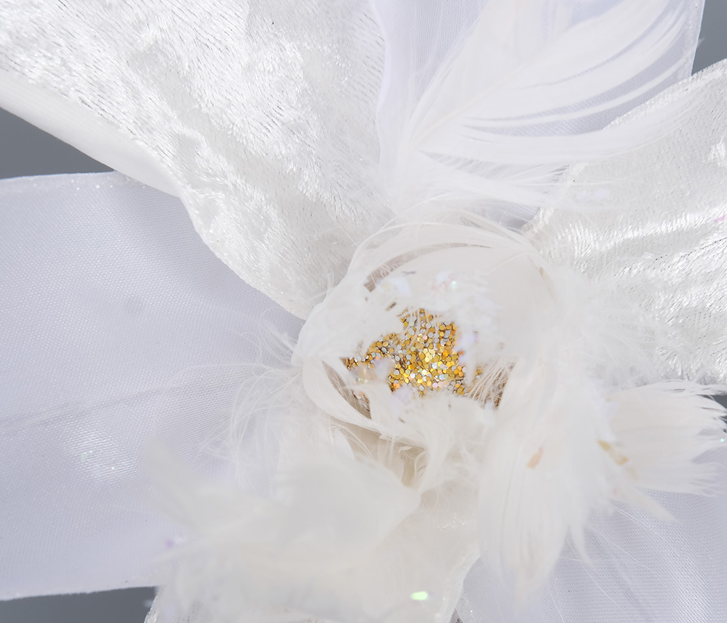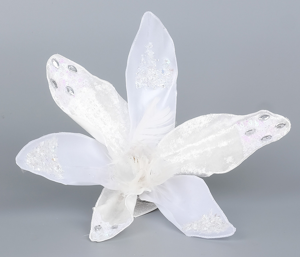 Декоративный новогодний цветок Магнолия с перьями 22*19см, 1 шт., белый