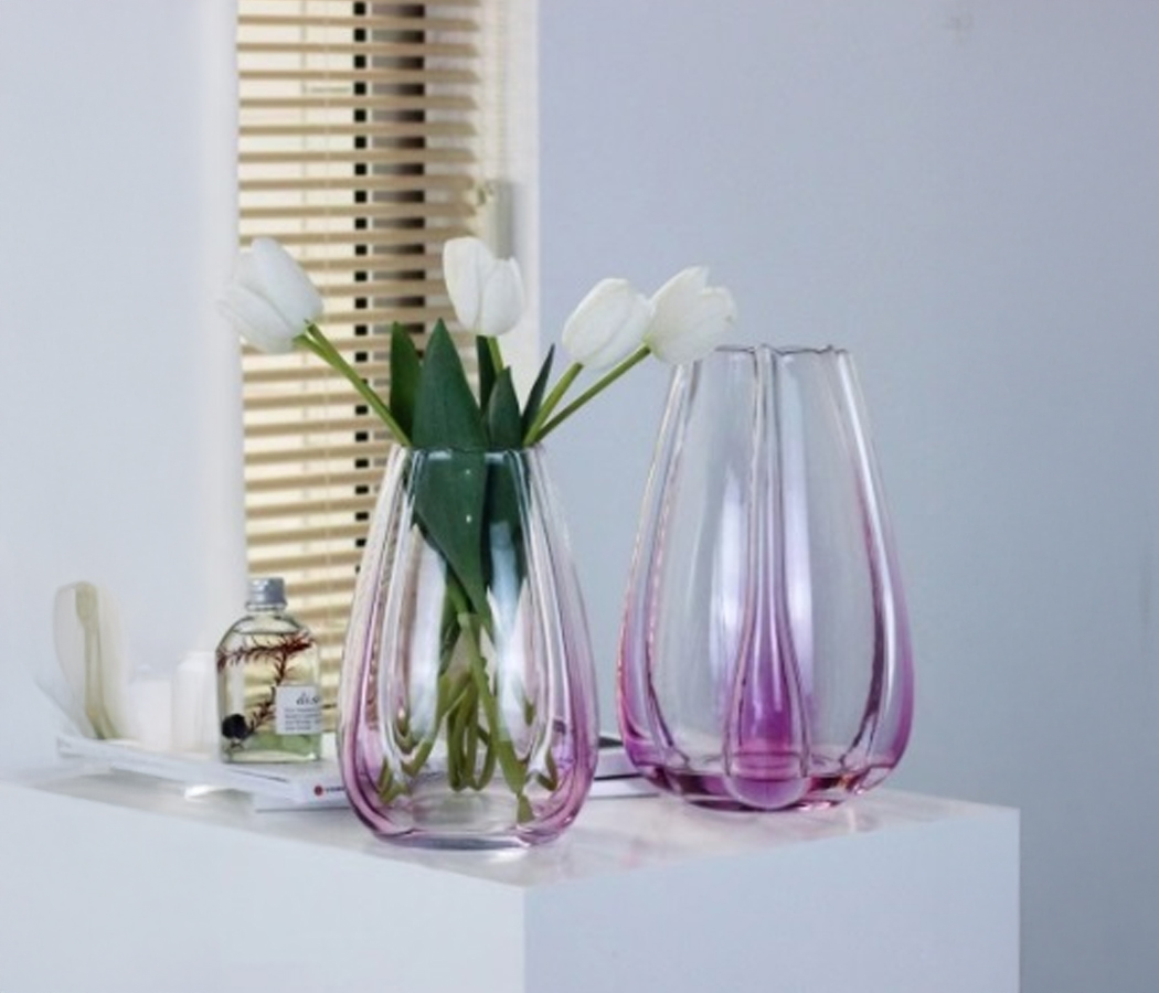 Ваза стеклянная D16* H28, 1 шт., прозрачный/фиолетовый