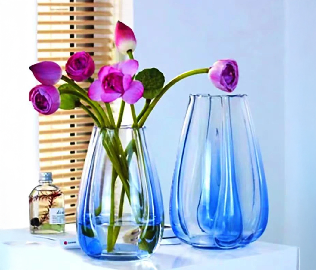 Ваза стеклянная D16* H28, 1 шт., прозрачный/синий
