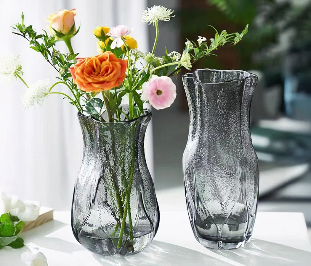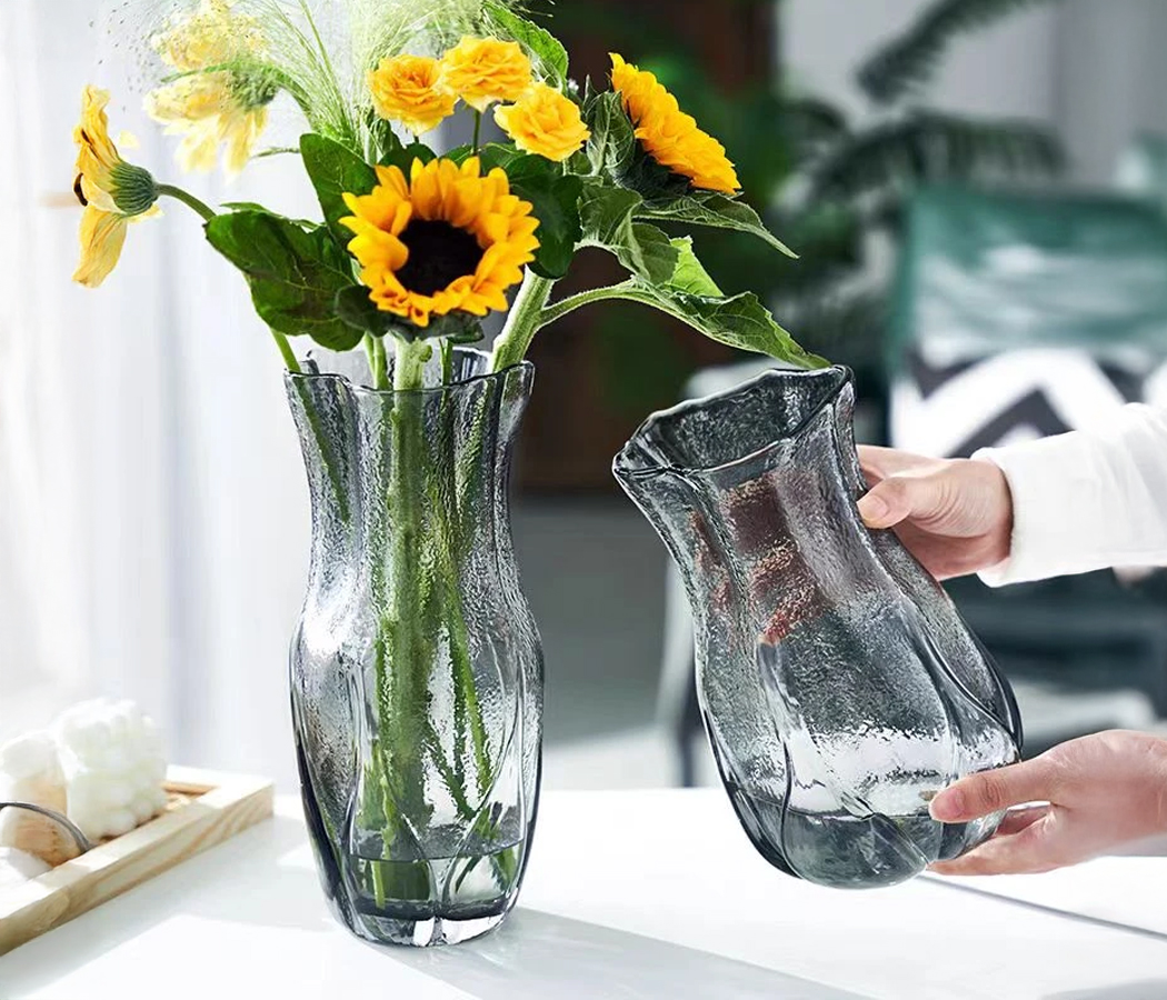 Ваза стеклянная D14* H28 см, 1 шт.,серый