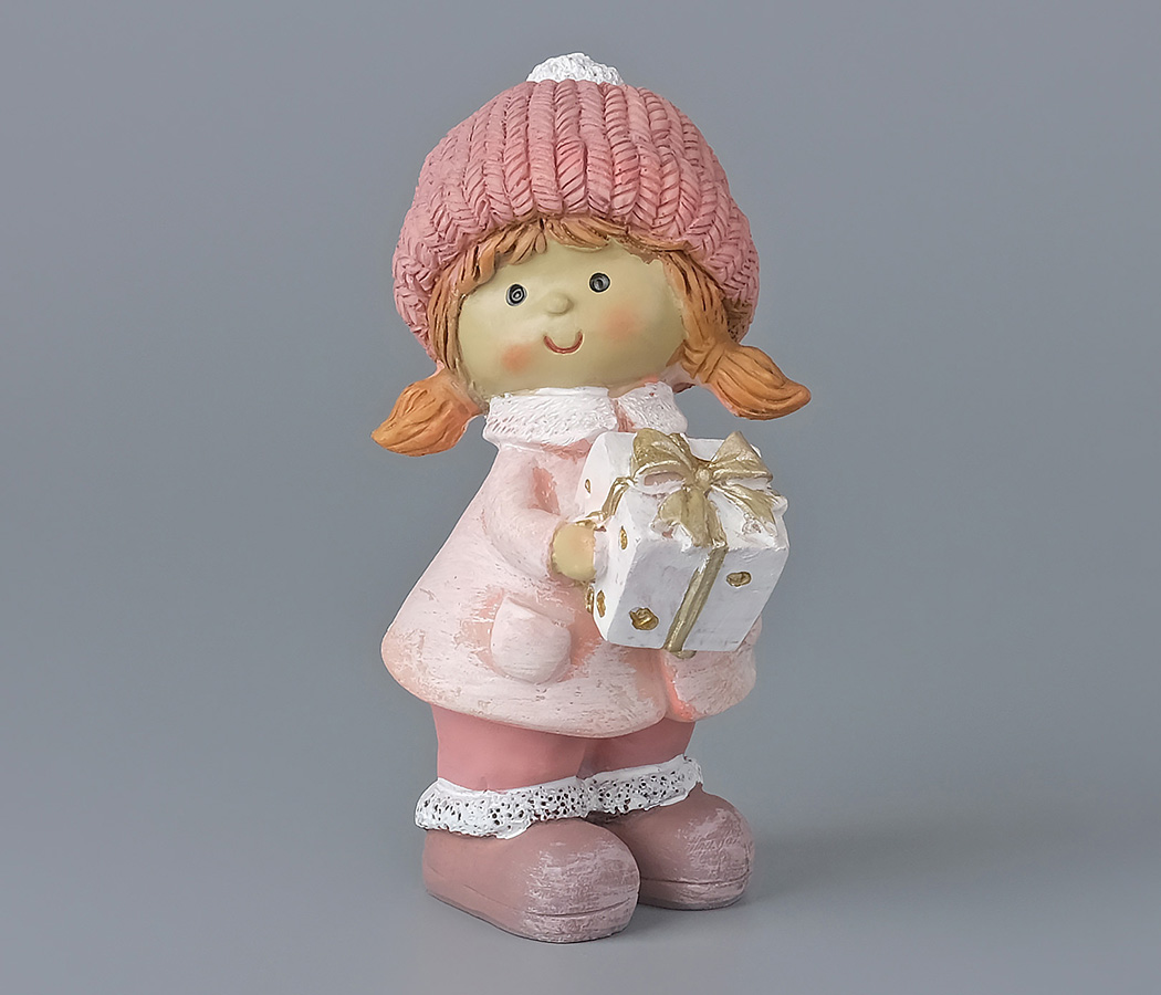 Декоративное новогоднее изделие Девочка с подарком, 12 см, розовый