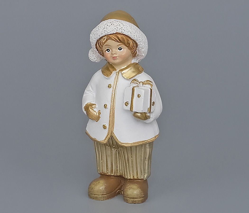 Декоративное новогоднее изделие Мальчик, 10 см, белый с золотом