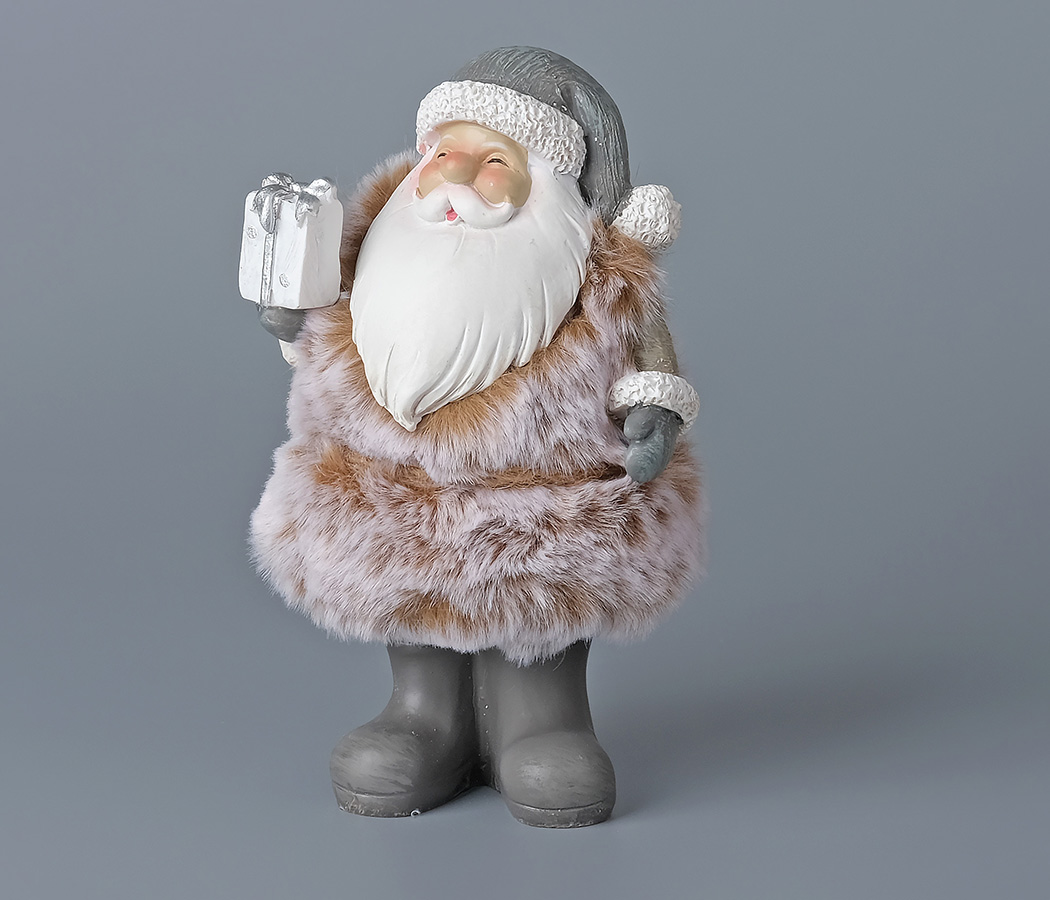 Декоративное новогоднее изделие Санта в пушистой шубке, 15 см, розово-серый