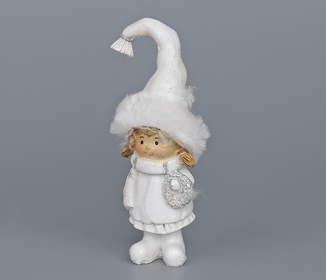 Декоративное новогоднее изделие Девочка в пушистой шапочке, 13 см, белый