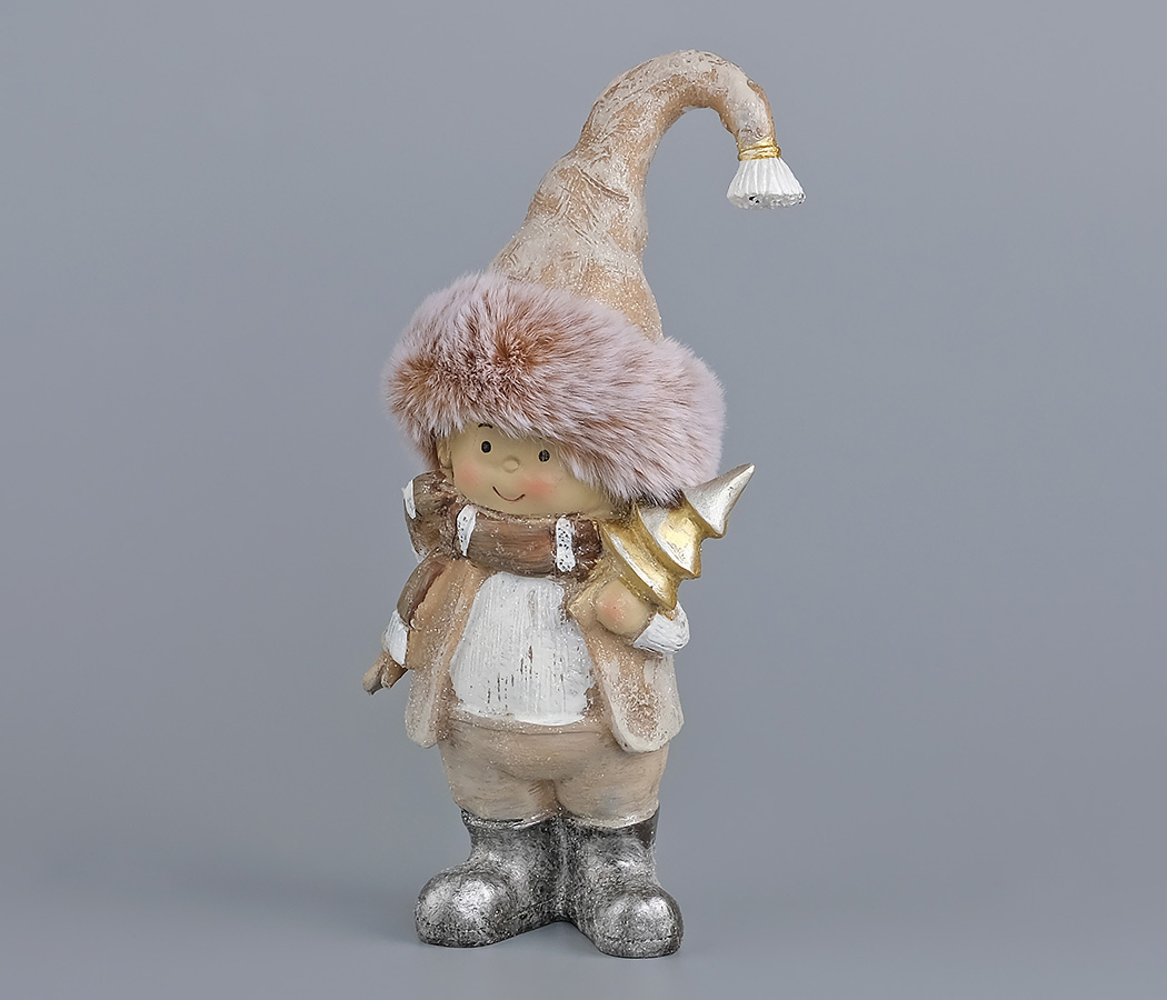 Декоративное новогоднее изделие Мальчик в пушистой шапочке, 17.5 см, латте