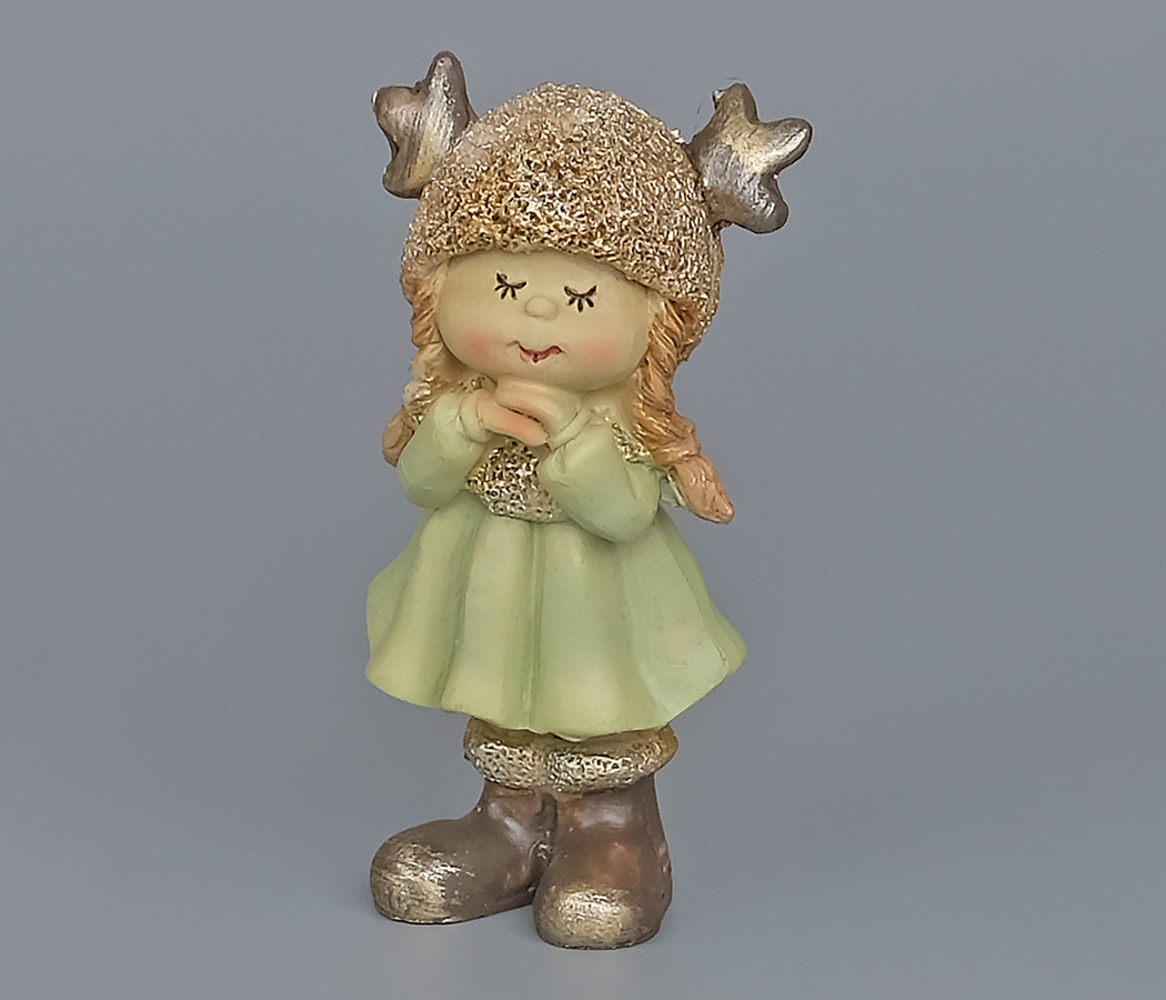 Декоративное новогоднее изделие Девочка, 9 см, золотисто-оливковый