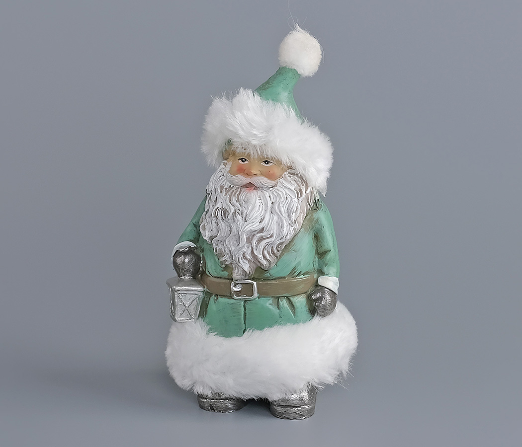 Декоративное новогоднее изделие Санта с фонарем , 14.5 см, зеленый с белым