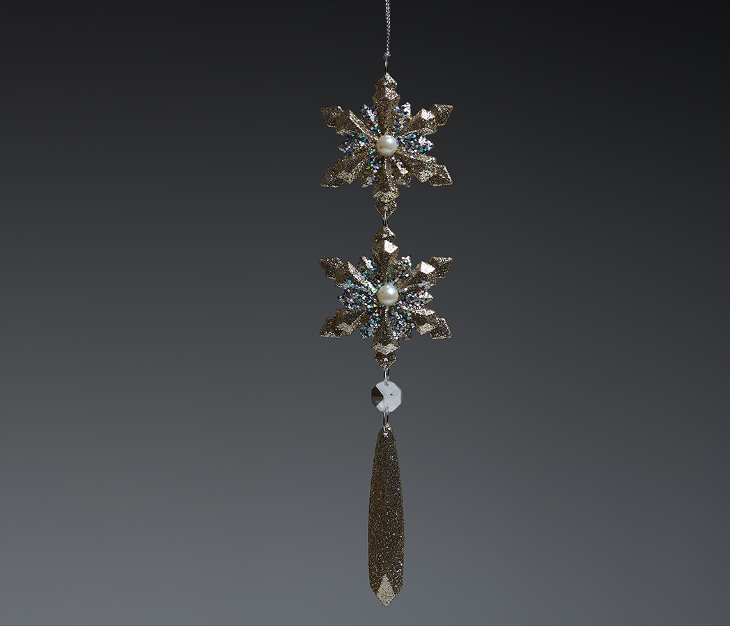 Фигурка декоративная снежинки с подвеской-капелькой с золотистым глиттером, 8,25 см, акрил, 1 шт.