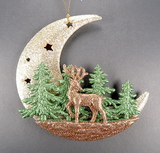Фигурка декоративная месяц с композицией из елей и оленя, украшенная глиттером, 12 см, акрил, 1 шт.