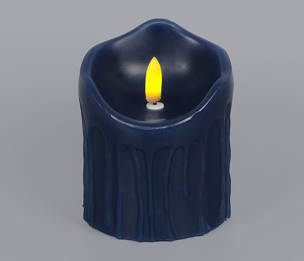 Светодиодная восковая свеча с эффектом мерцания, 8*8*10 см, синий