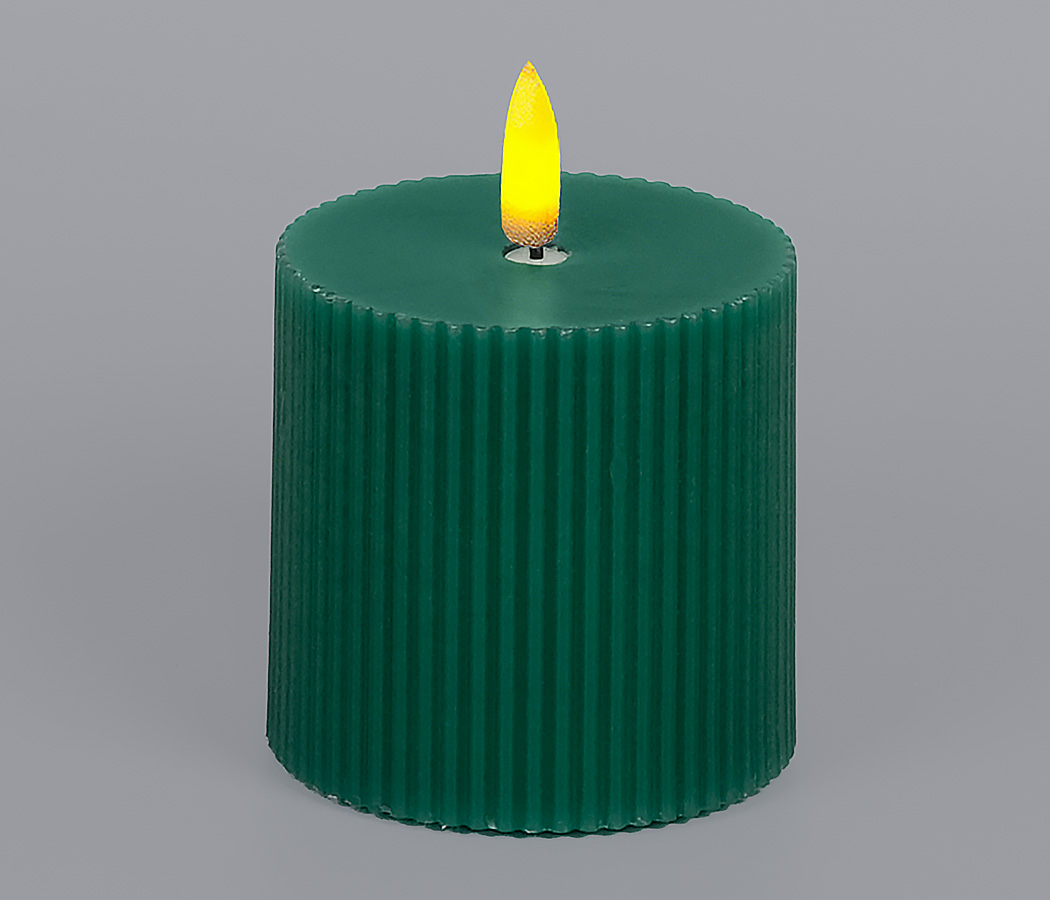 Светодиодная восковая свеча с эффектом мерцания , 7.5*7.5*7.5/10 см, зеленый