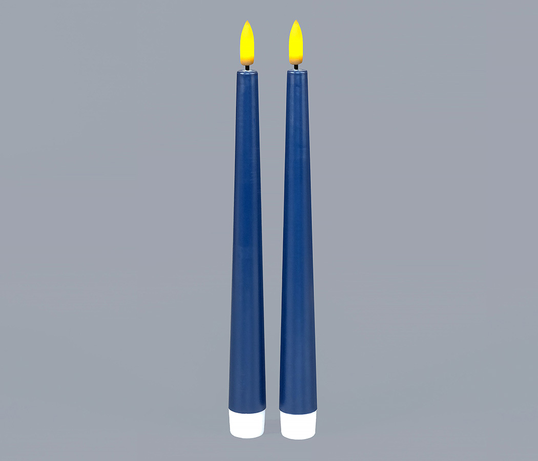 Набор светодиодных пластиковых свеч с эффектом мерцания , 2.5*2.5*22.5/26 см, 2 шт/упак, синий