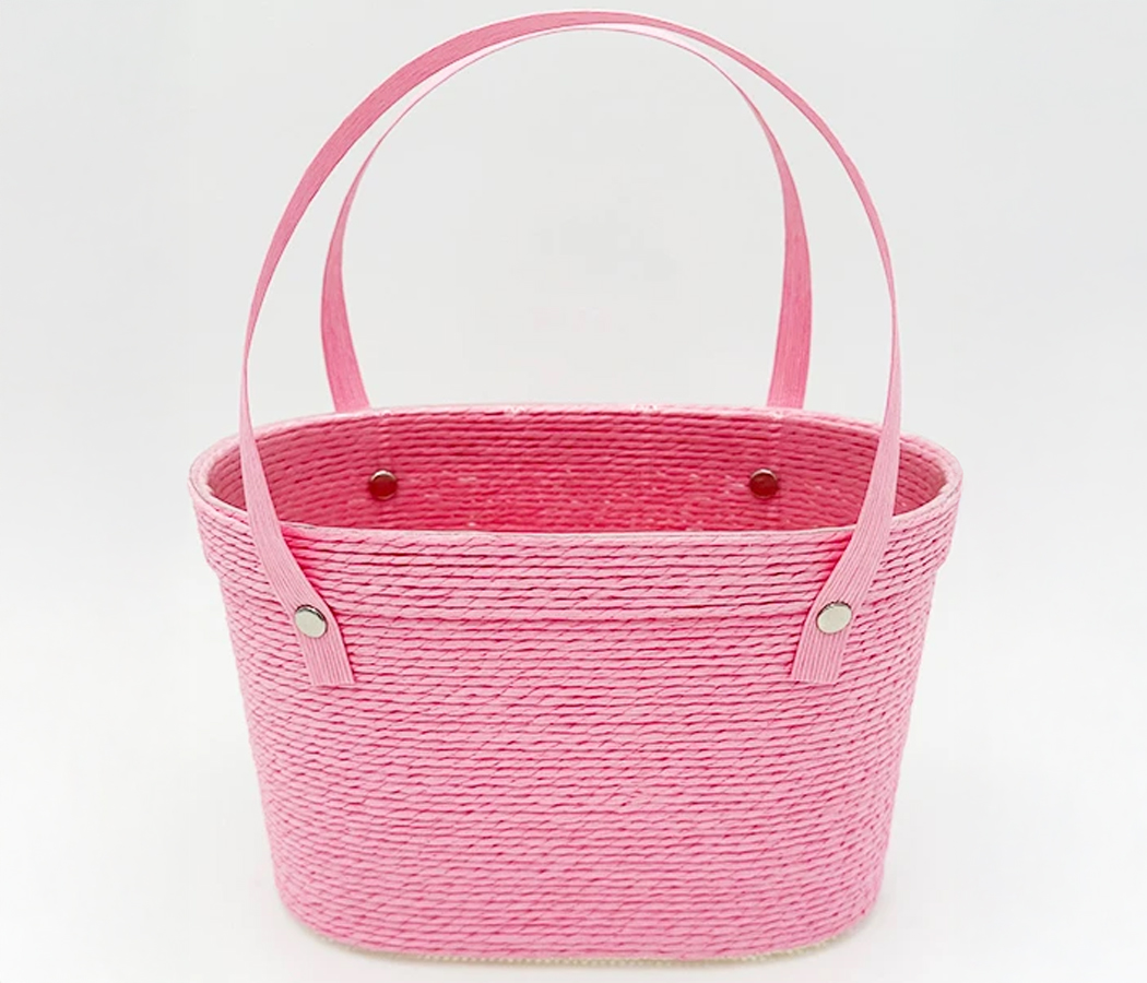 Сумочка плетеная из бумажной лозы, верх 23*13 см, низ 20*9 см, высота 14 см, розовый