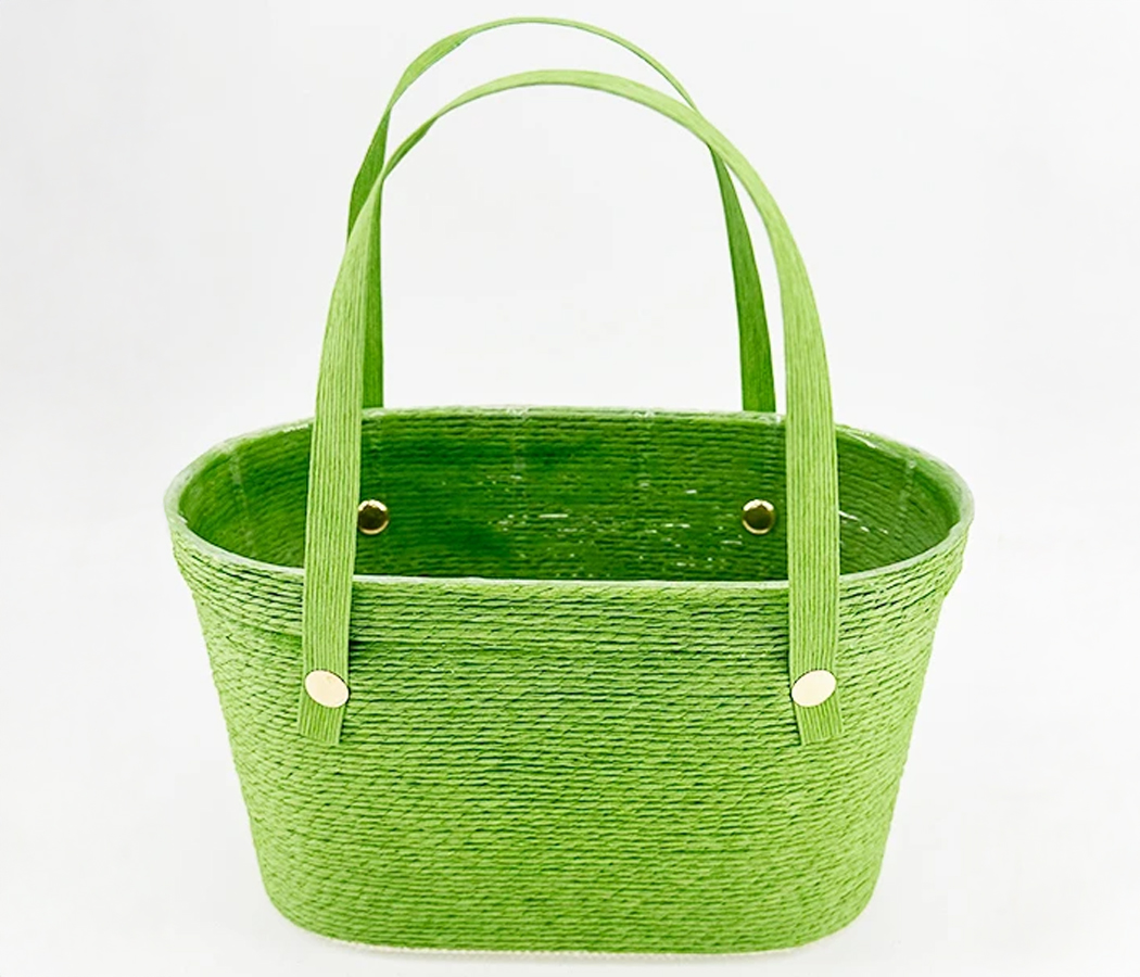 Сумочка плетеная из бумажной лозы, верх 23*13 см, низ 20*9 см, высота 14 см, травяной