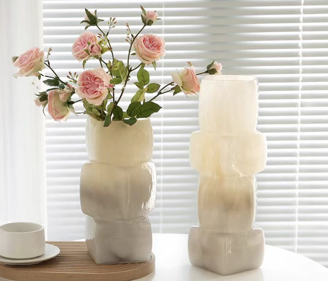 Ваза стеклянная D10 * H30, 1 шт., градиент молочный/бежевый
