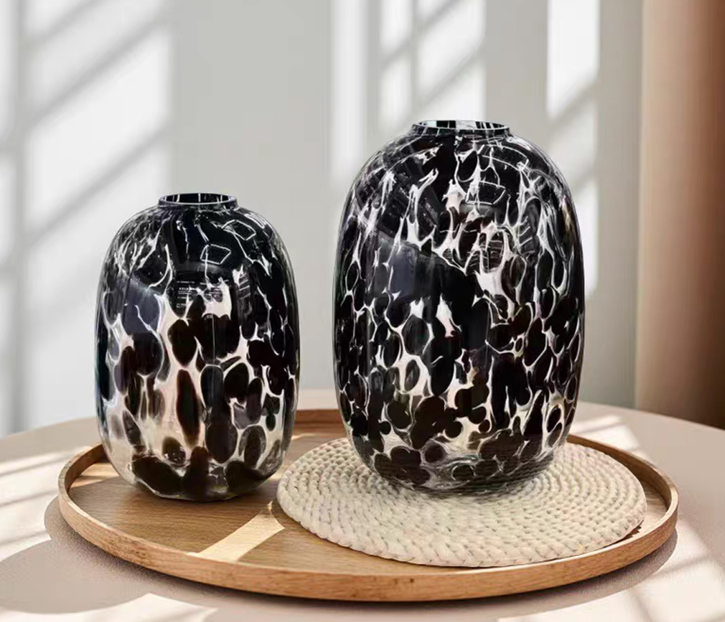 Ваза стеклянная D17 * H25 см, 1 шт., прозрачный/черный