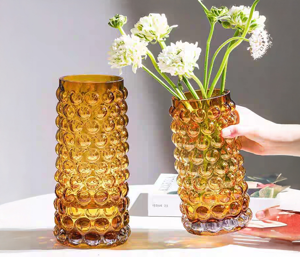 Ваза стеклянная D13* H28 см, 1 шт.,янтарный