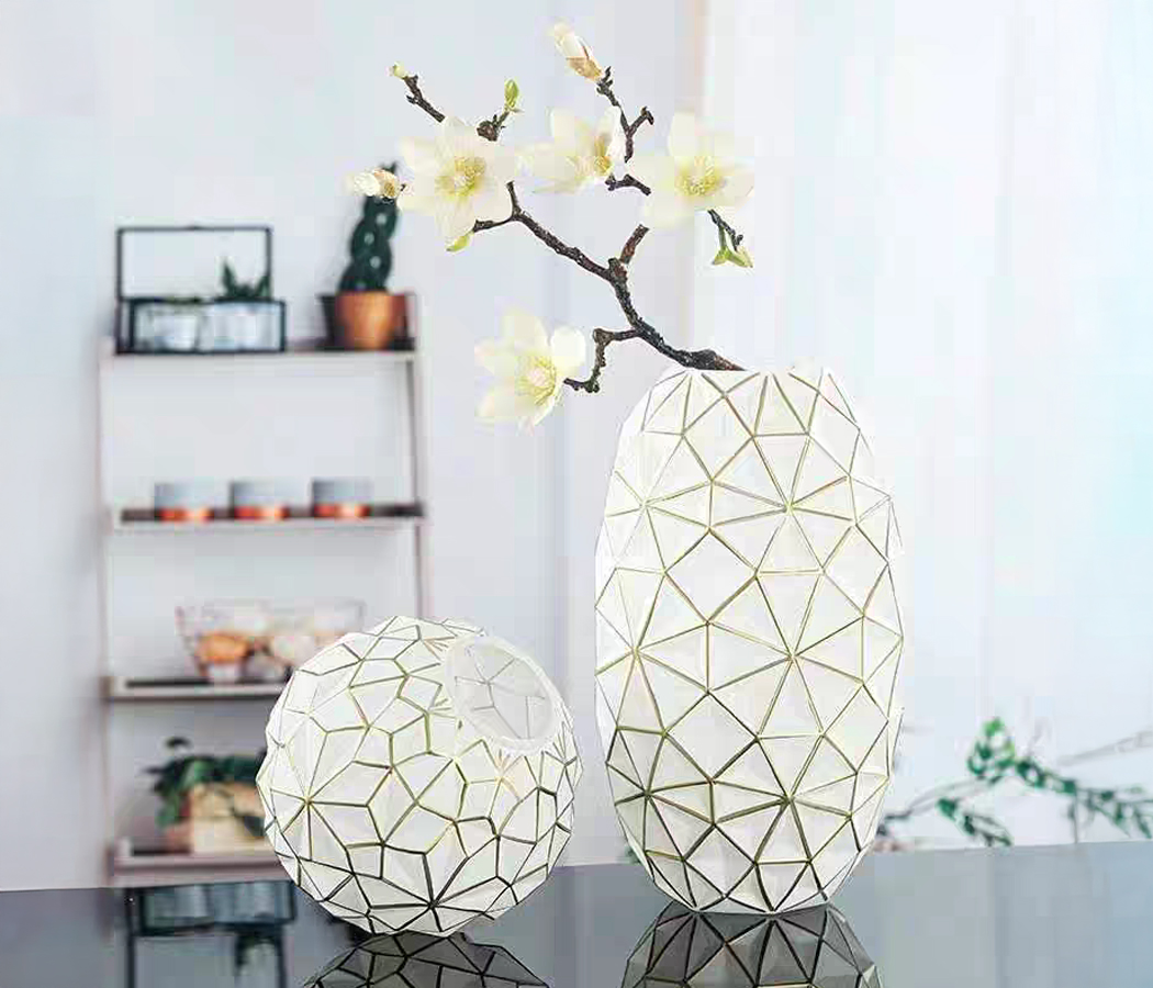 Ваза стеклянная D15 * H25 см, 1 шт., белый/золото