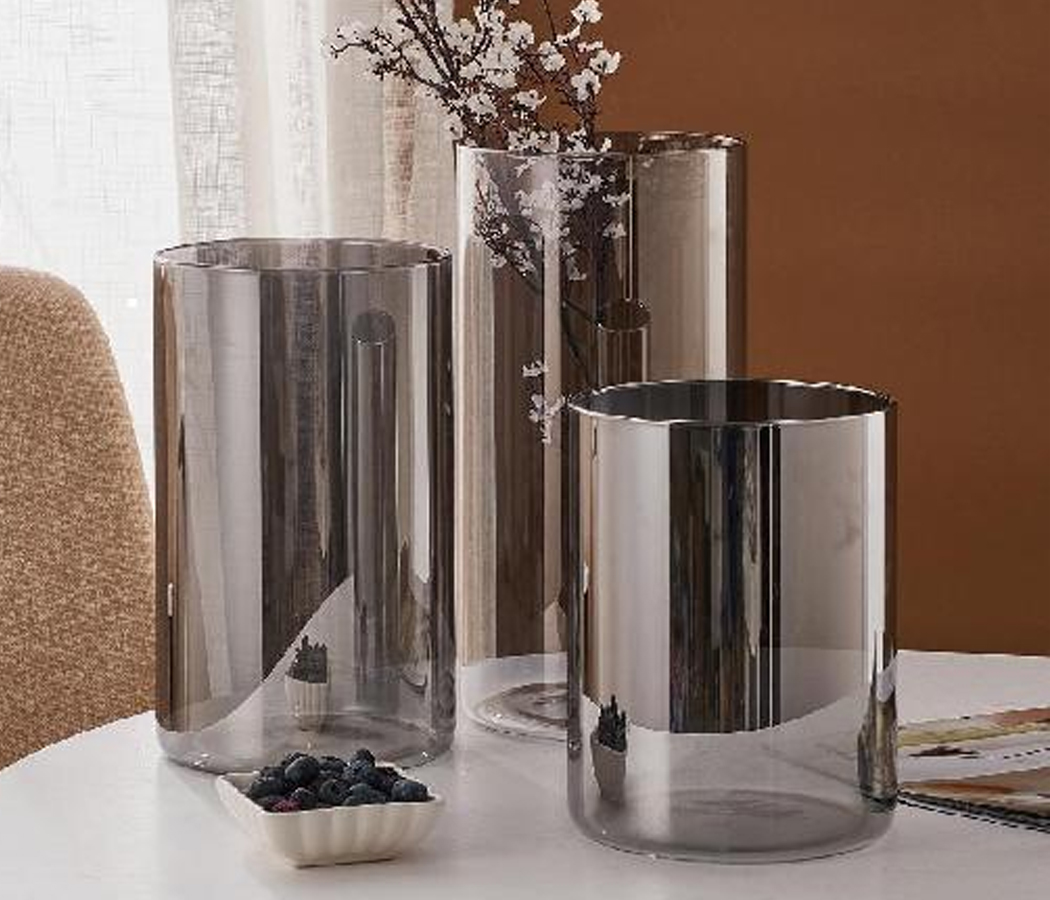 Ваза стеклянная 15*15*25 см, 1 шт., серый.