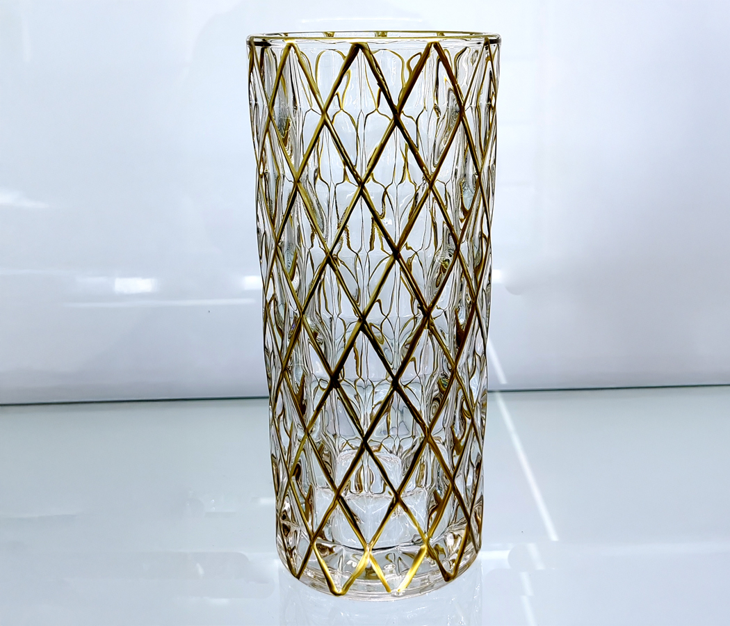 Ваза стеклянная D11,5 * H24,5 см, 1 шт., прозрачный/золото