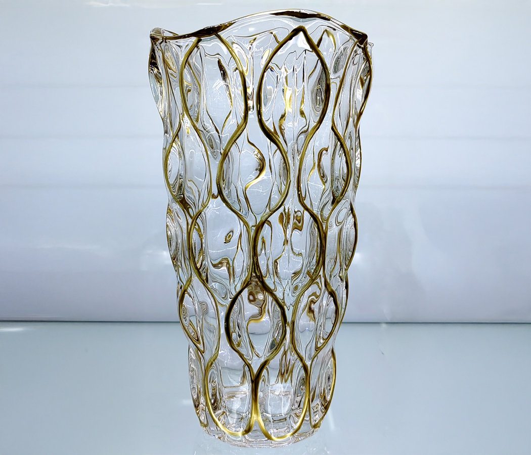 Ваза стеклянная D13 * H24 см, 1 шт., прозрачный/золото