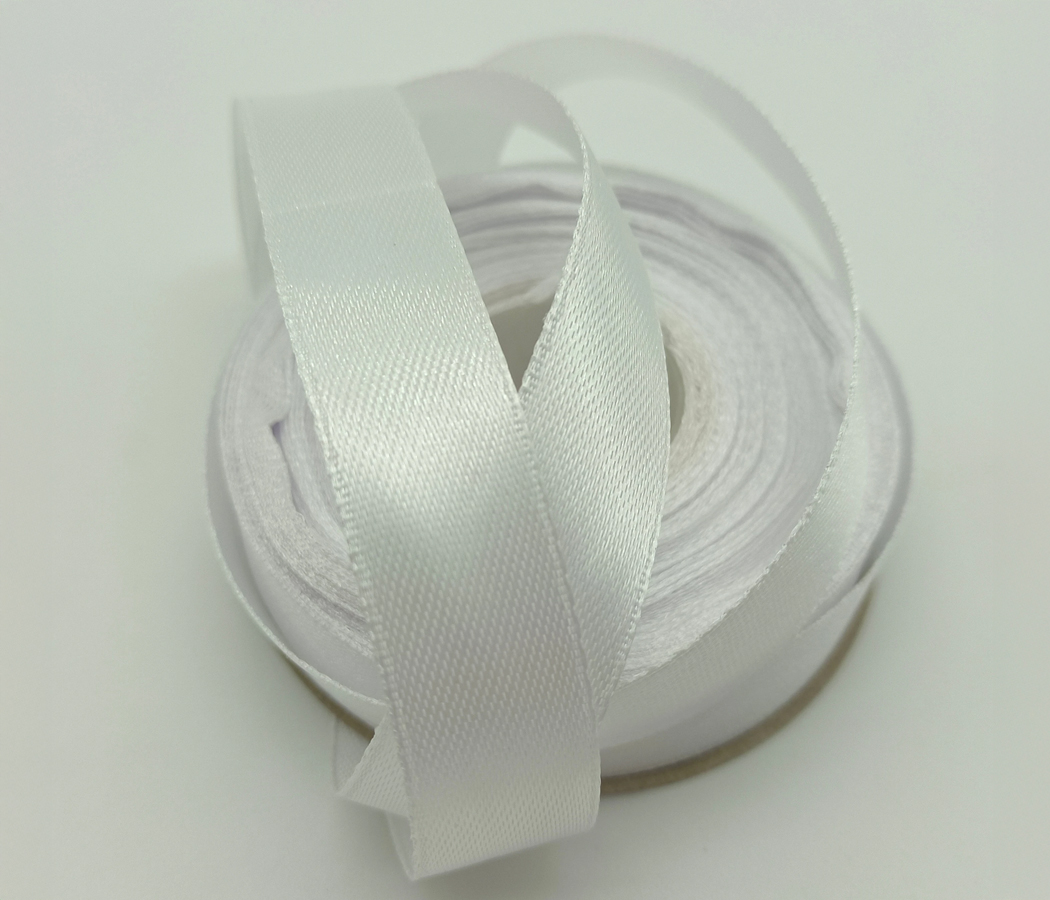 Лента атласная, на картонн.катушке, односторонняя, 15 мм х 100 ярд,белый (15 шт/упак)