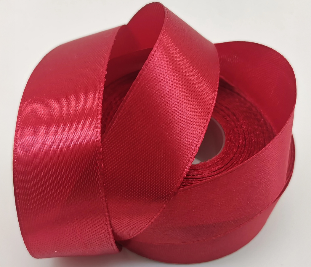 Лента атласная, на картонн.катушке, односторонняя, 25 мм х 100 ярд, бордовый (5 шт)
