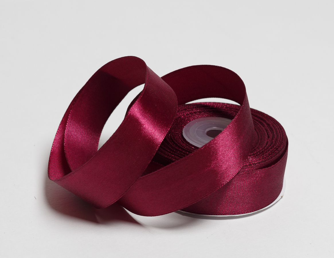 Лента атласная, на картонн.катушке, односторонняя, 25 мм х 100 ярд, бургунди (5 шт)