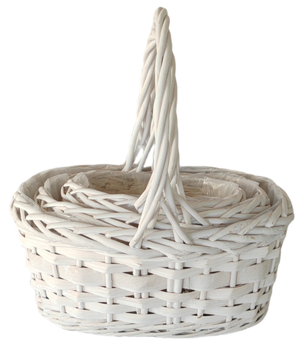 Набор корзин плетеных (ива): 29x22xH12xHH30 B24x18, 24x18xH11xHH26 B20x13, 18x14xH10xHH22 B16x11, 3 шт., белый