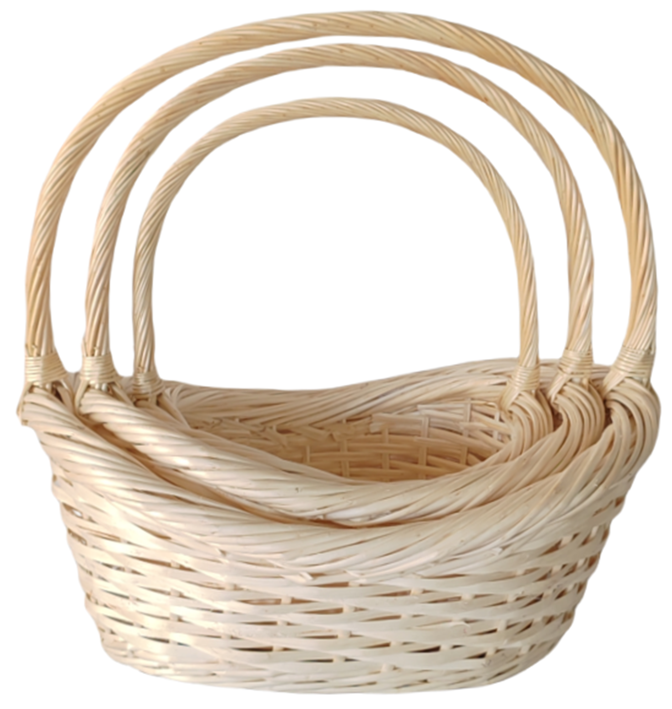 Набор корзин плетеных (ива): 50x40xH15/22xHH48 B38x27, 40x32xH14/19xHH43 B32x22, 33x25xH13/17xHH38 B26x18, 3 шт., выбеленный