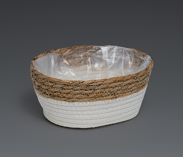 Корзина плетеная (рогоз): 24x16xH11 B18,5x10, 1 шт., белый/натур.