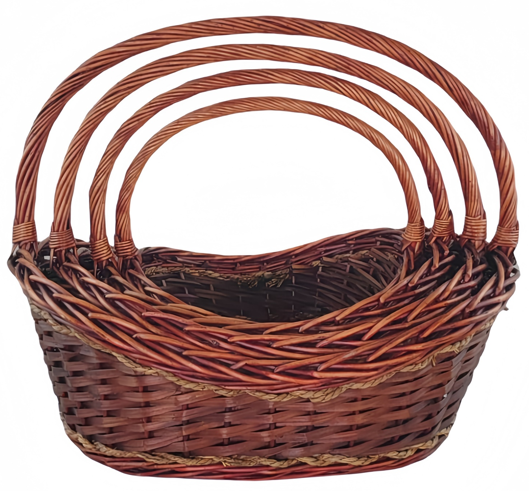 Н-р корзин (ива): 56X38XH15/22XHH46 B40X29, 48X33XH13/20XHH41 B35X25, 40X28XH12/16XHH37 B29X20, 35X22XH10/14XHH31 B24X16, 4 шт., коричневый