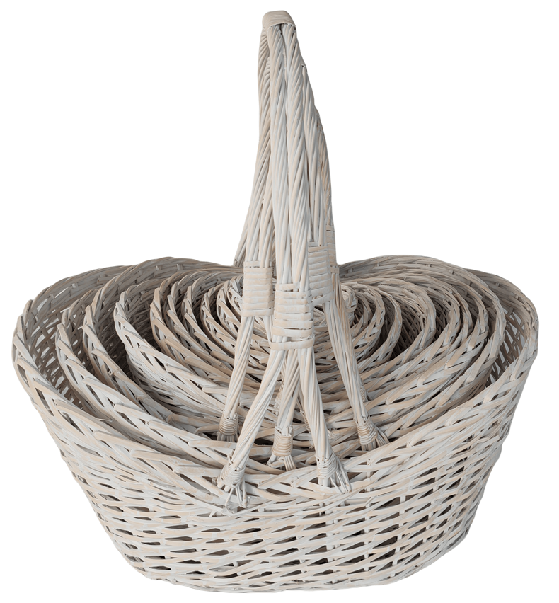 Набор корзин плетеных (ива):96x72xH26, 84x62xH26,75x57xH25,66x51xH23,58x44xH22,50x38xH19, 41x31xH18,35x26xH17,29x21xH15,24x17xH13, 10 шт., белый