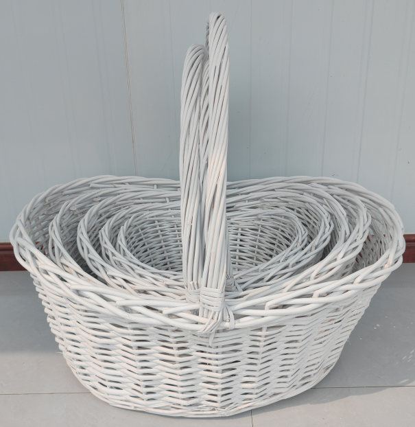 Набор корзин плетеных (ива):77x62 H27/35 B60x50, 67x53 H22/31 B52x42, 56x46 H22/26 B45x36, 49x36 H18/24 B38x29, 39x30 H15/20 B31x23, 5 шт., белый