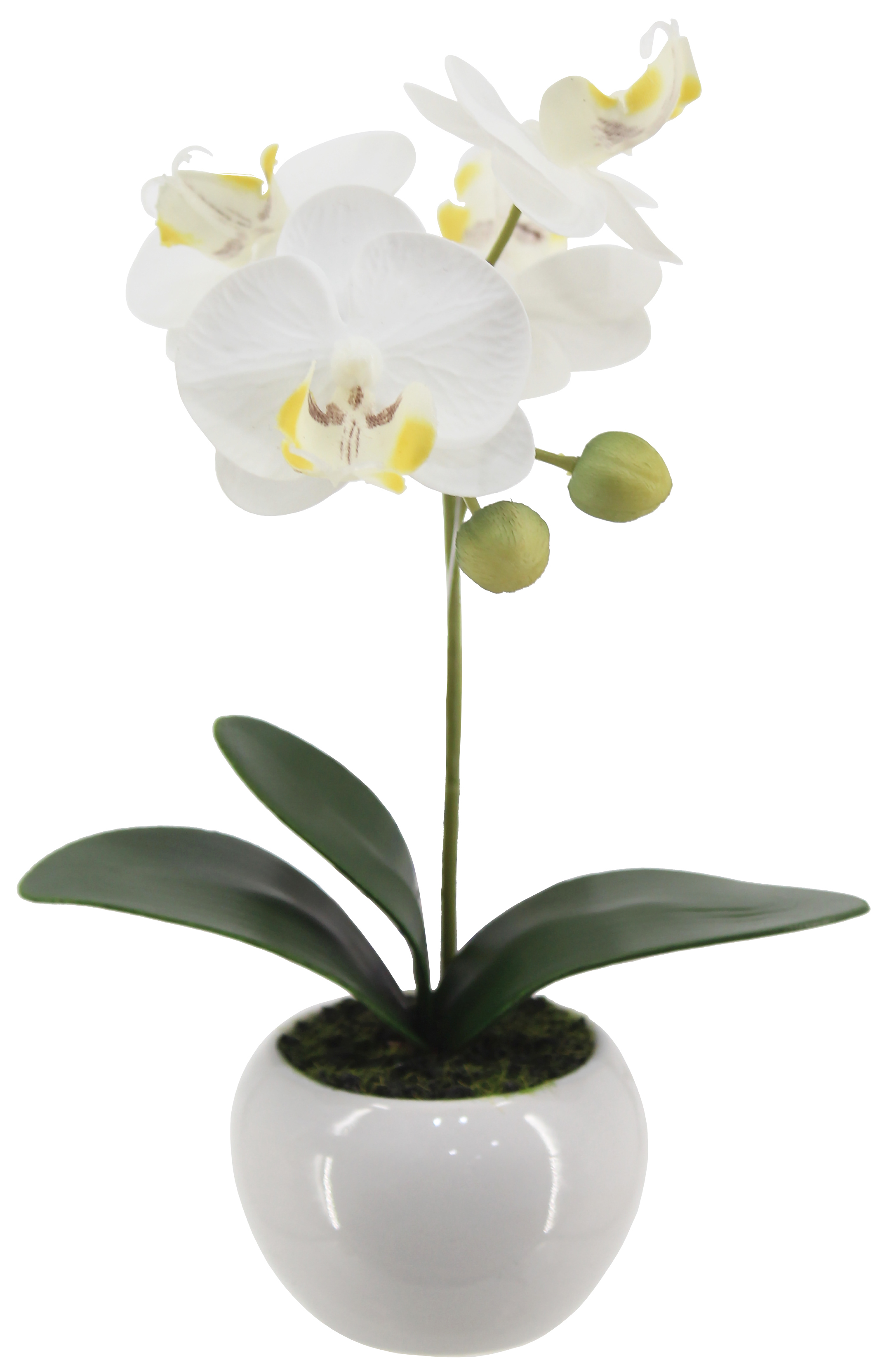 Искусственная орхидея в керамическом горшке, высота 20 см, цвет белый, количество соцветий 1, 1 шт.