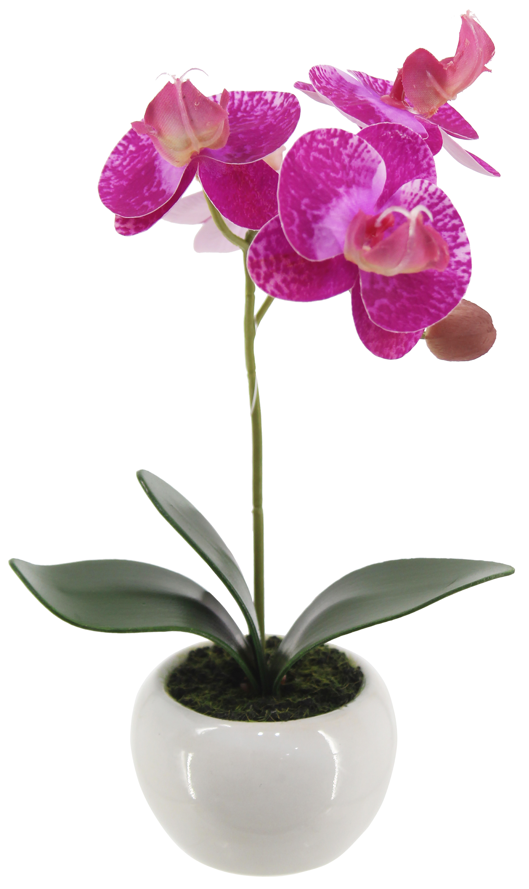 Искусственная орхидея в керамическом горшке, высота 20 см, цвет темная фуксия, количество соцветий 1, 1 шт.