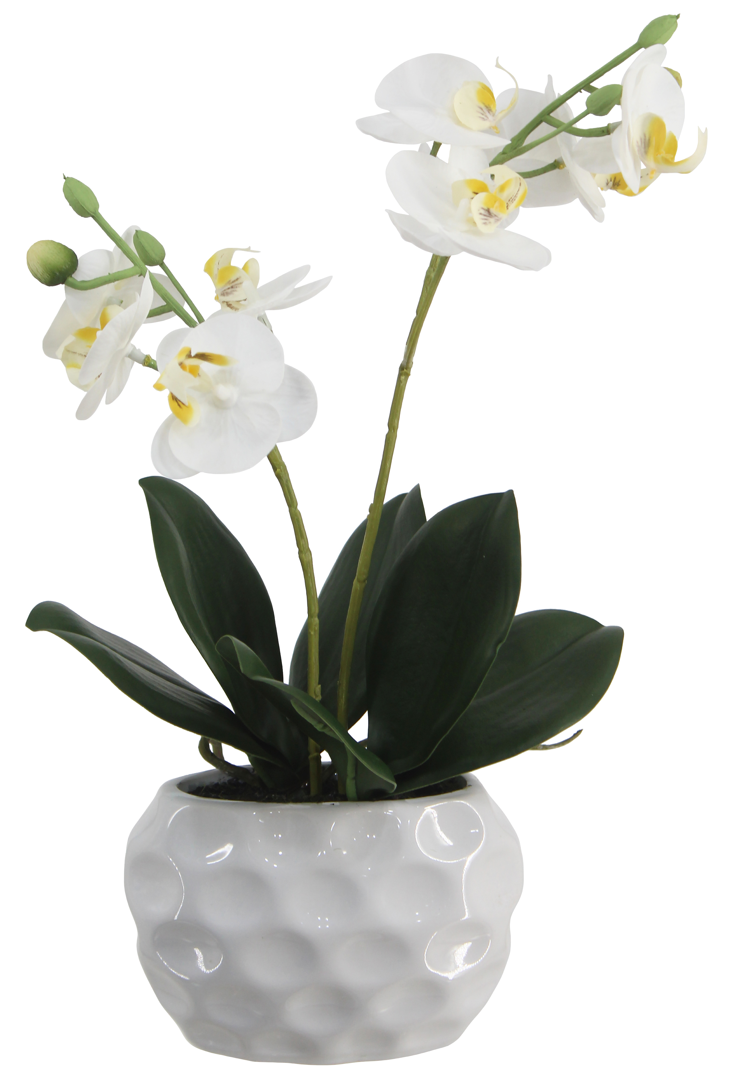 Искусственная орхидея в керамическом горшке, высота 34 см, цвет белый, количество соцветий 2, 1 шт.