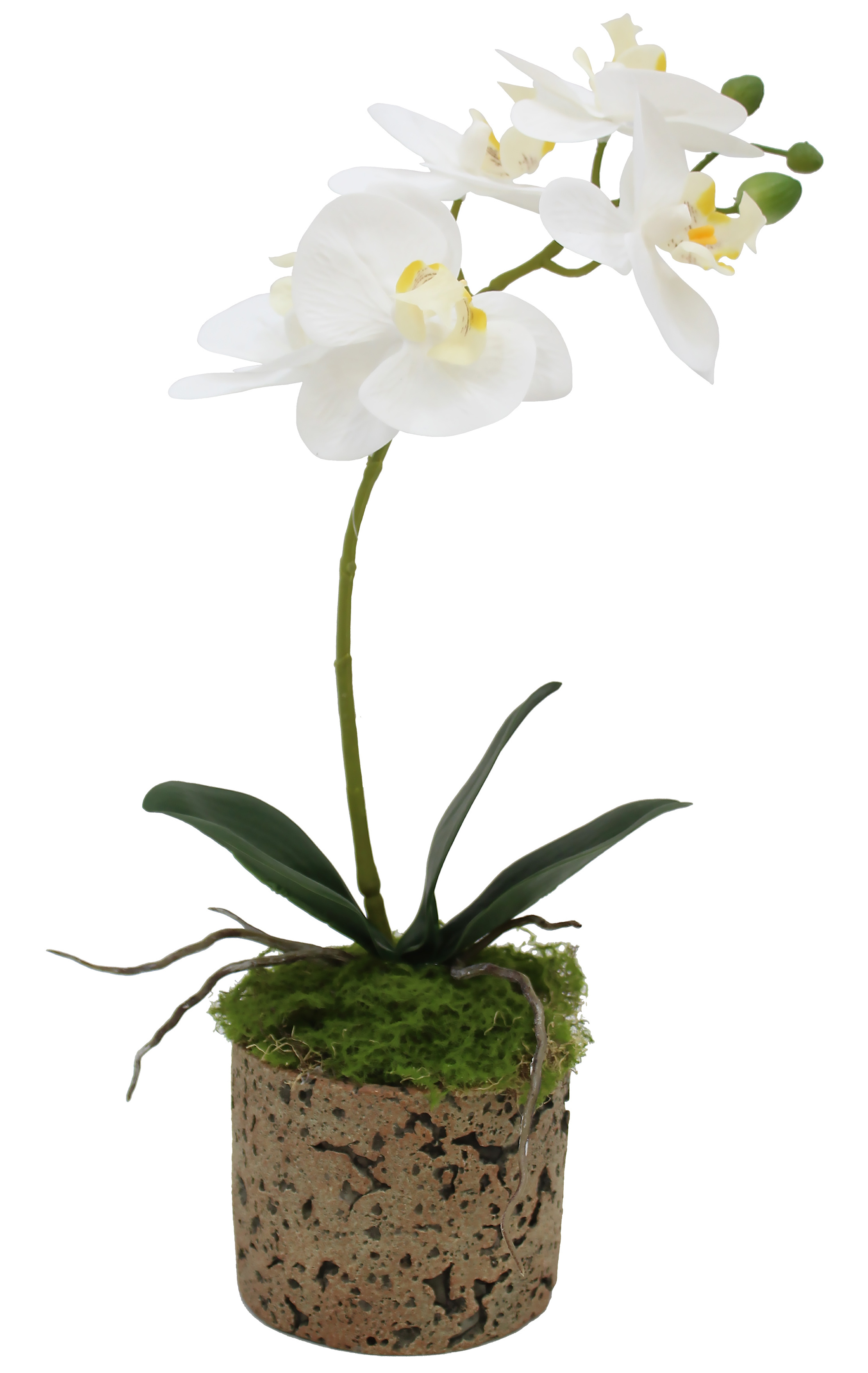 Искусственная орхидея в керамическом горшке, высота 40 см, цвет белый, количество соцветий 1, 1 шт.