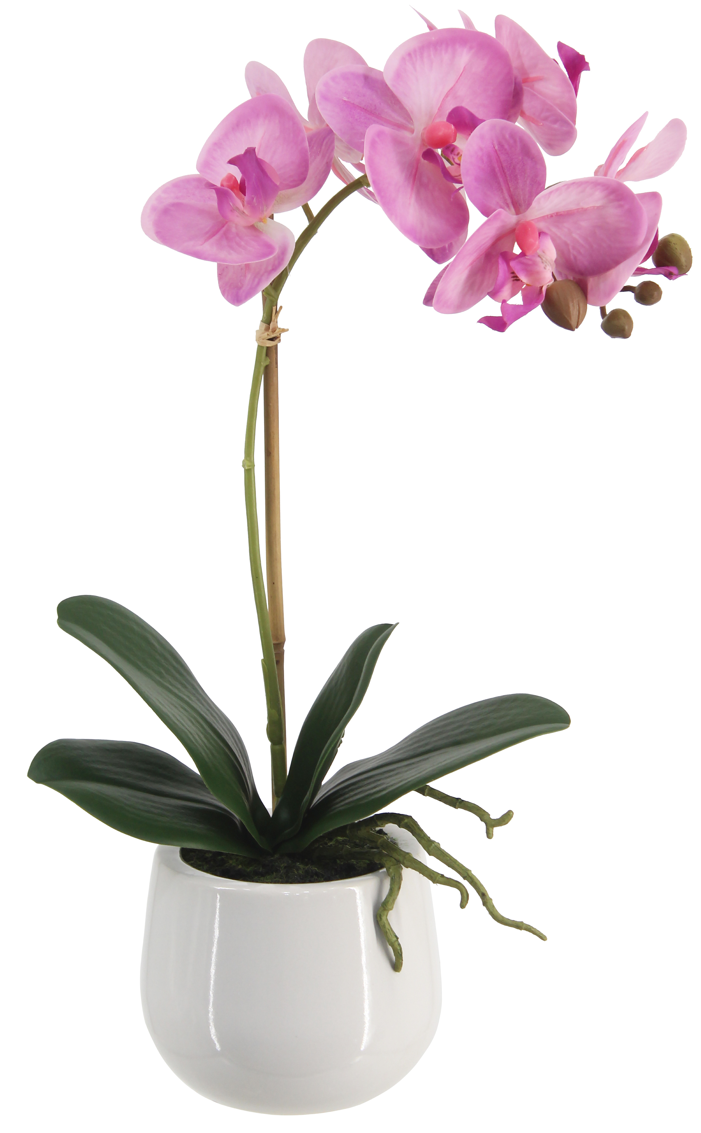 Искусственная орхидея в керамическом горшке, высота 43 см, цвет светлая фуксия, количество соцветий 1, 1 шт.