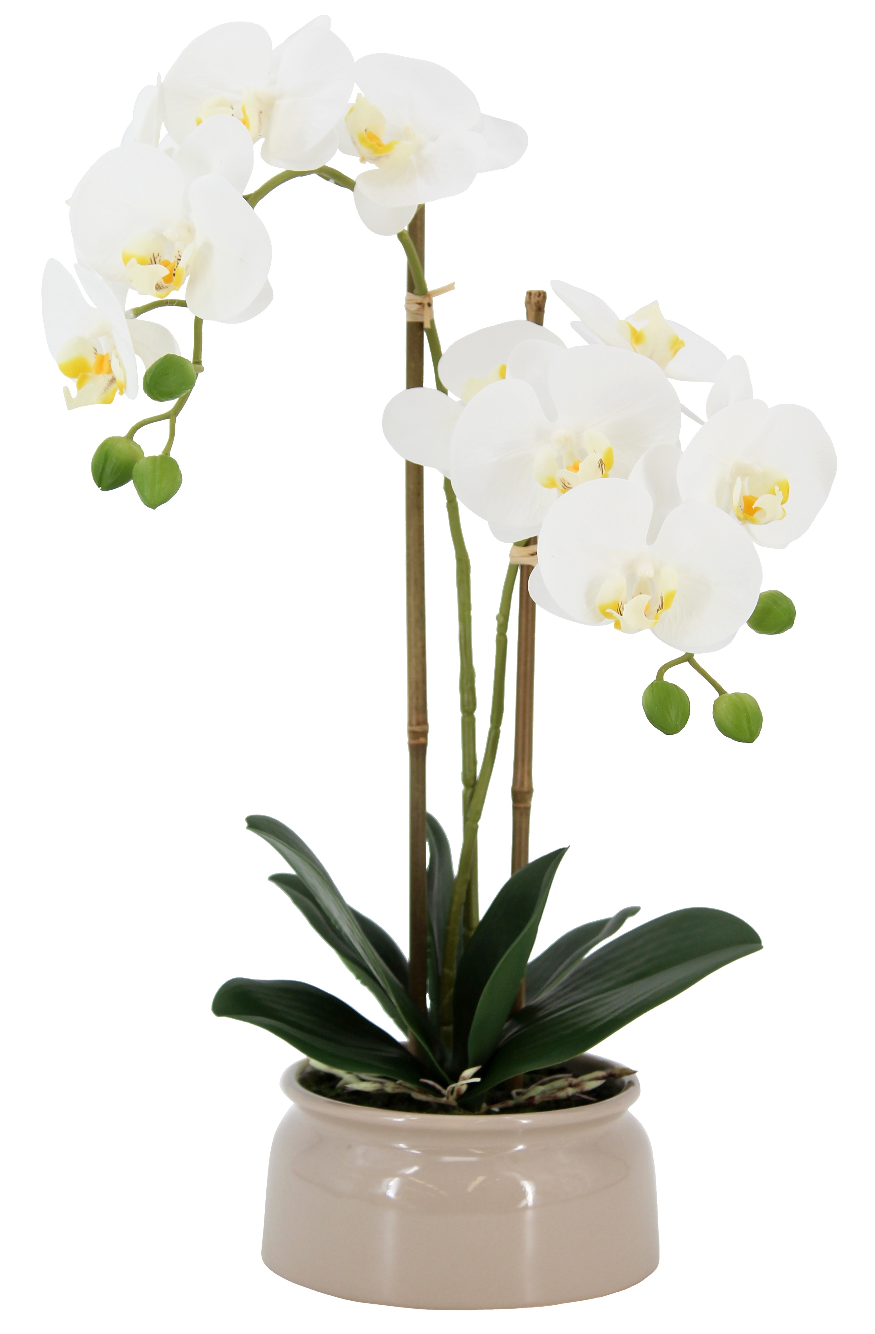 Искусственная орхидея в керамическом горшке, высота 46 см, цвет белый, количество соцветий 2, 1 шт.