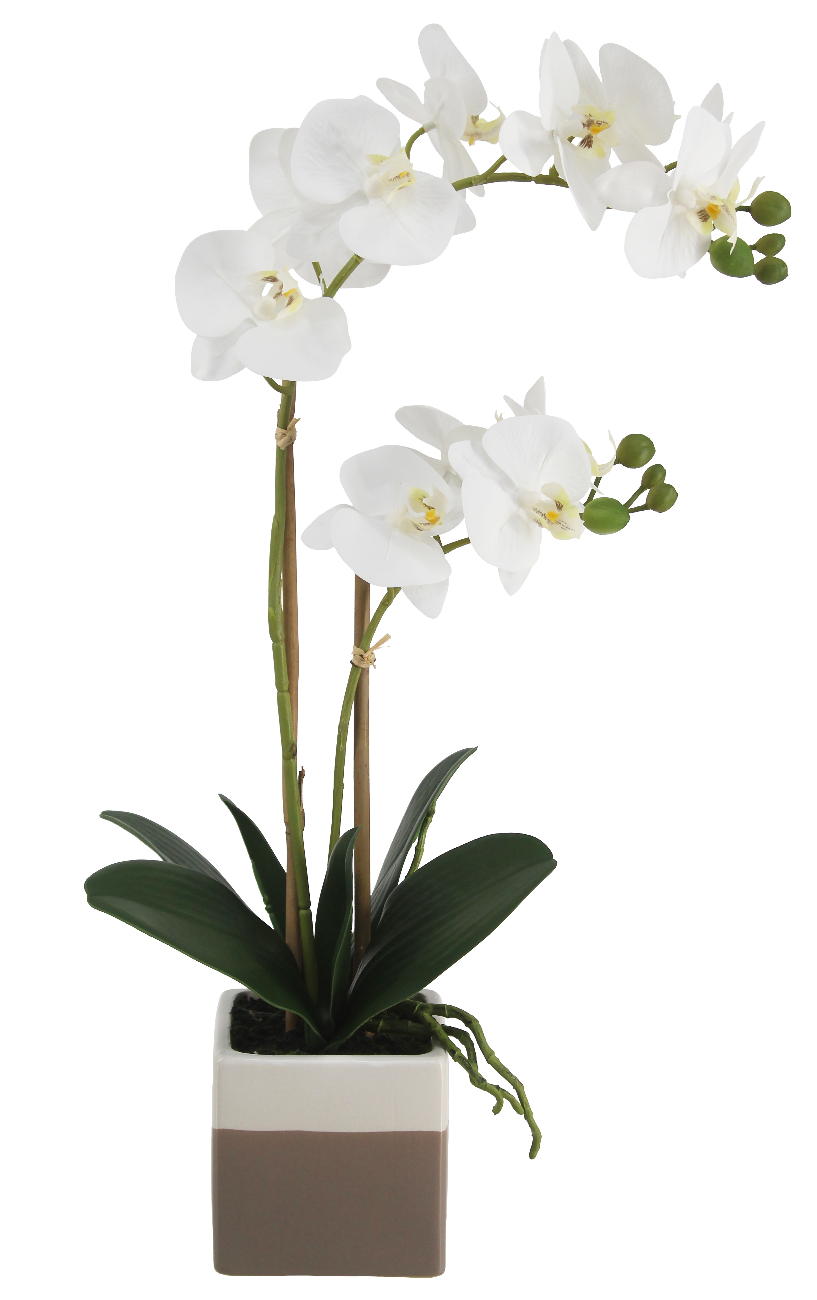 Искусственная орхидея в керамическом горшке, высота 53 см, цвет белый, количество соцветий 2, 1 шт.
