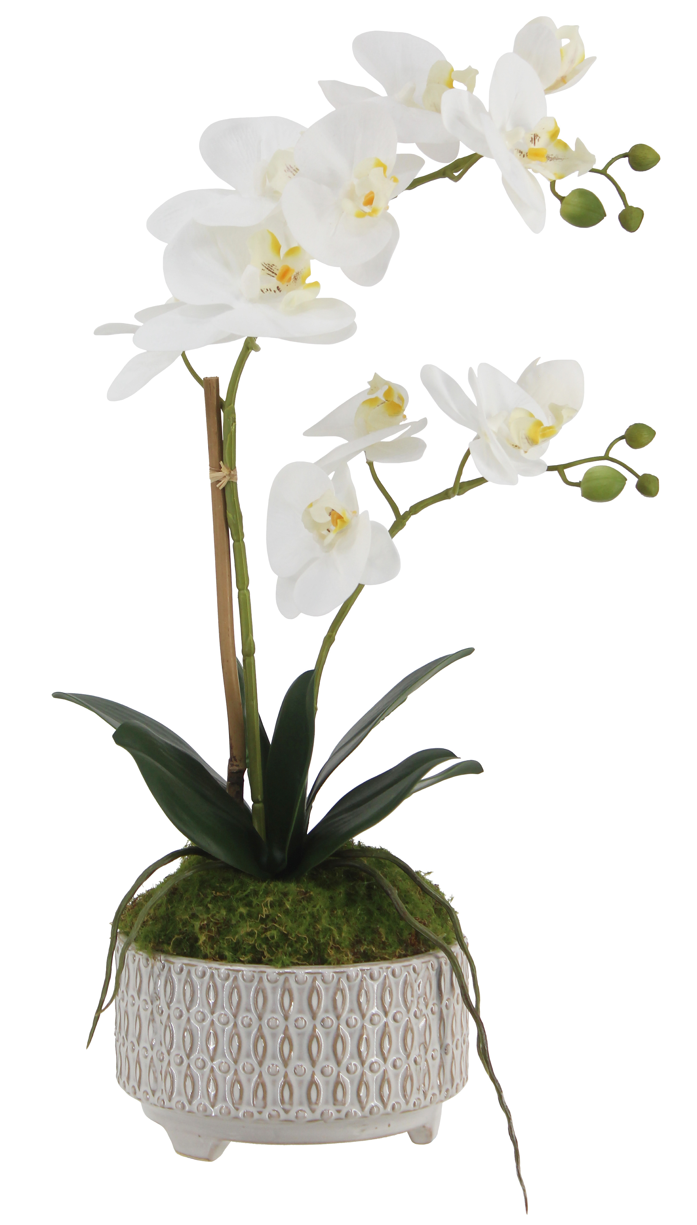 Искусственная орхидея в керамическом горшке, высота 50 см, цвет белый, количество соцветий 2, 1 шт.