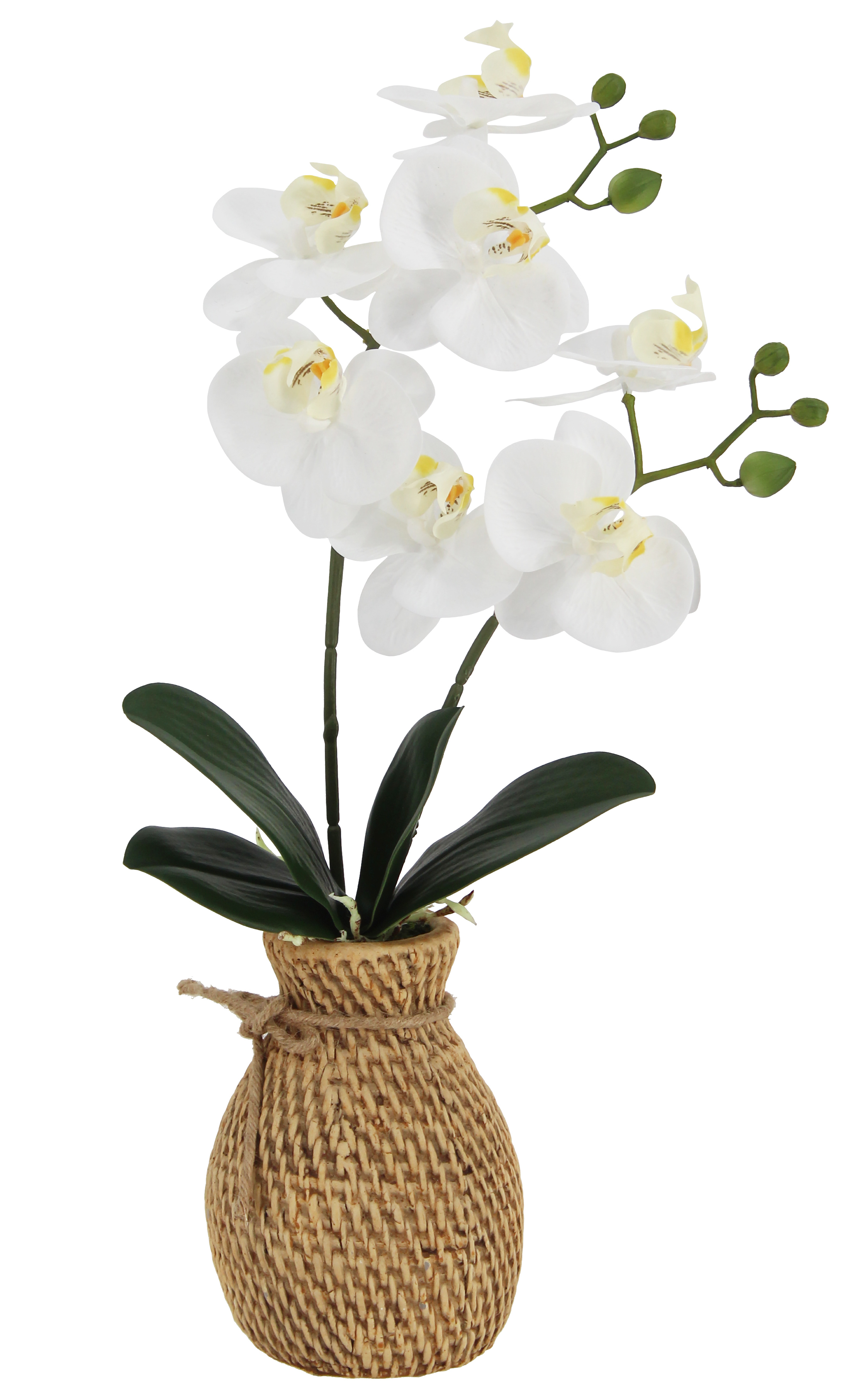 Искусственная орхидея в керамическом горшке, высота 51 см., цвет белый, количество соцветий 2, 1 шт.