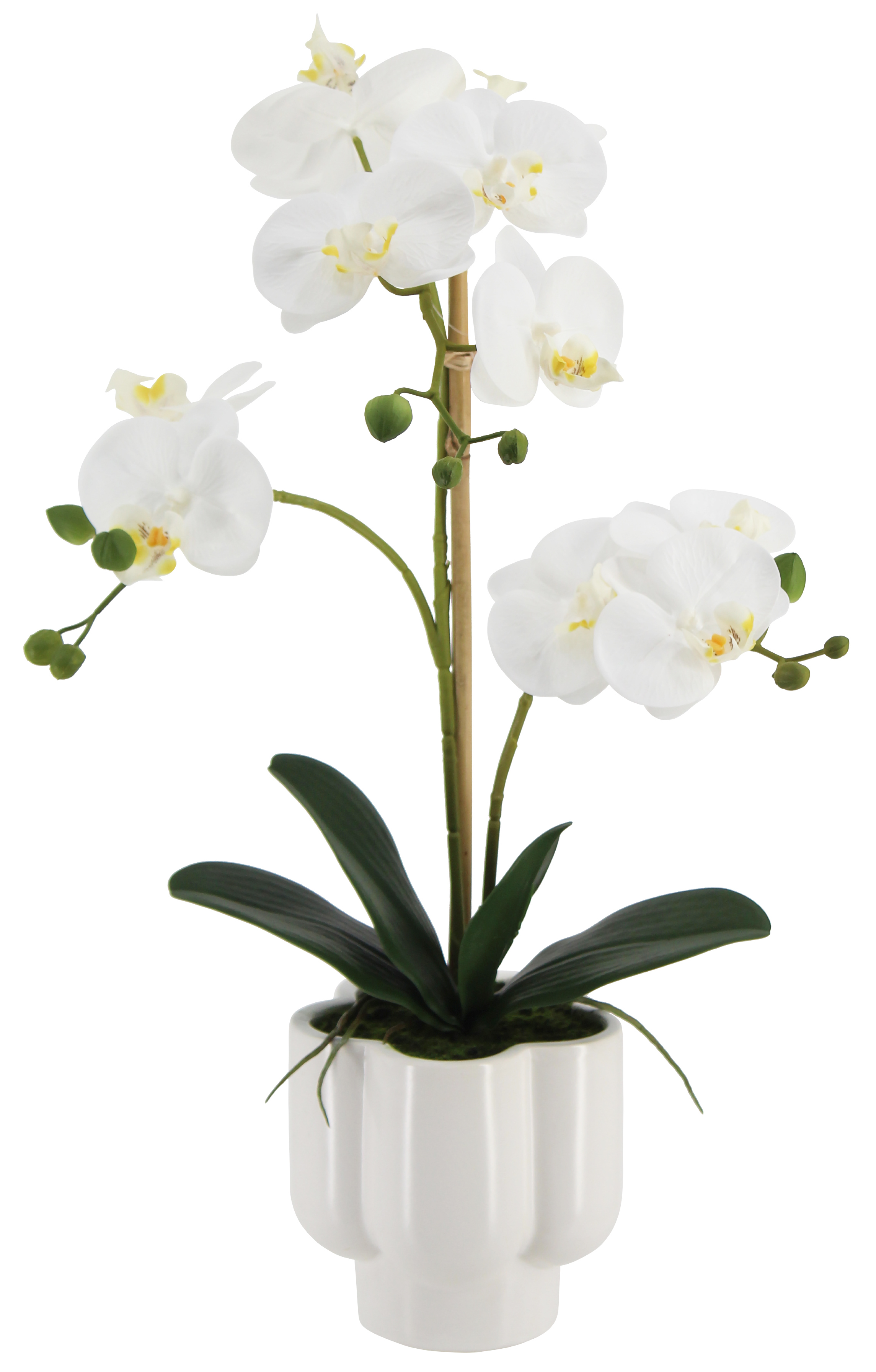 Искусственная орхидея в керамическом горшке, высота 51 см, цвет белый, количество соцветий 2, 1 шт.