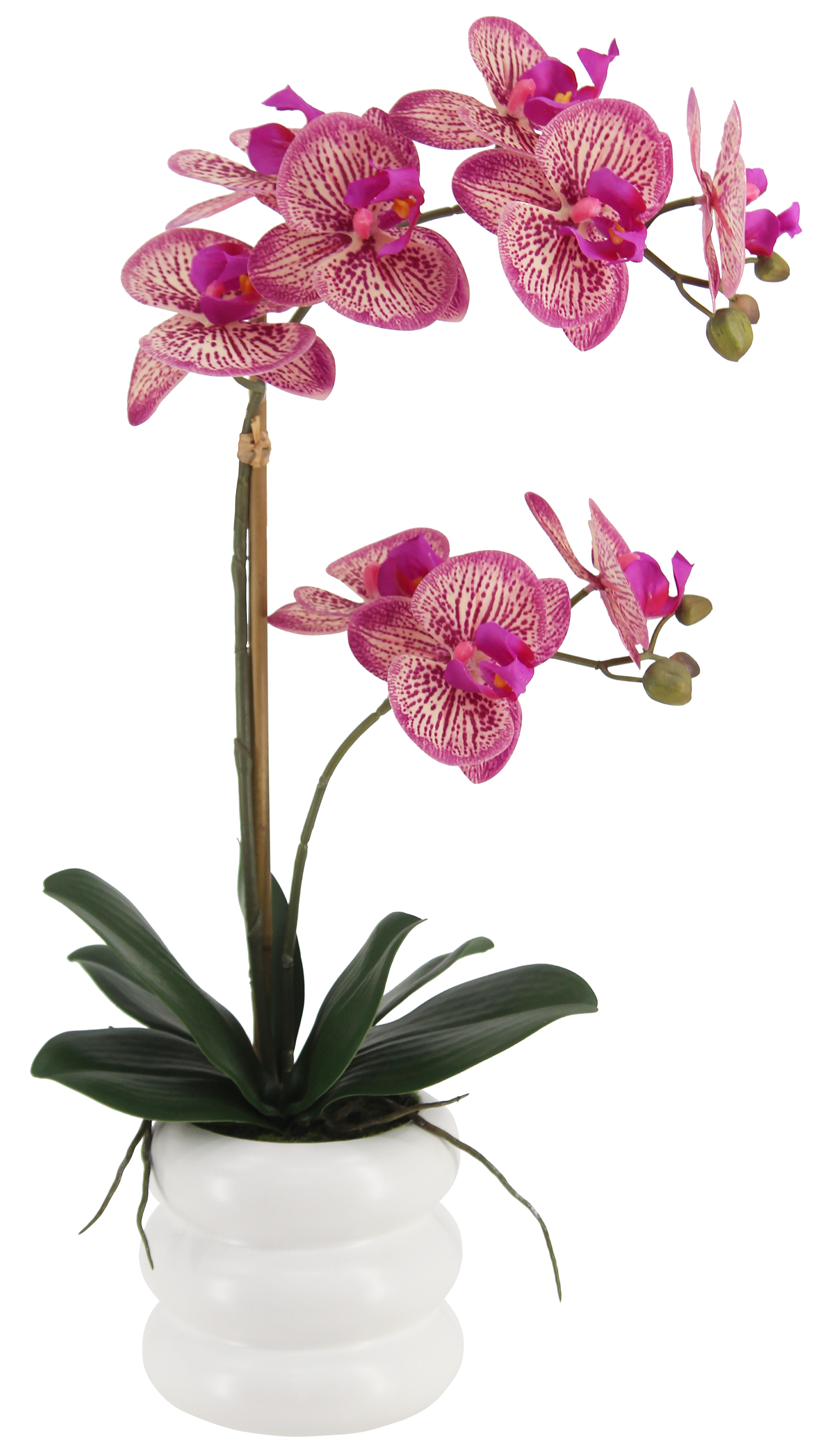 Искусственная орхидея в керамическом горшке, высота 51 см, цвет фуксия, количество соцветий 2, 1 шт.